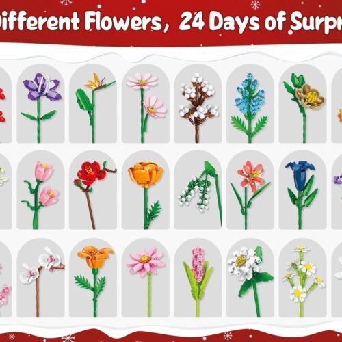 24 Days STEM Flower Bouquet Building Blocks Christmas Countdown Calendar Gifts Box