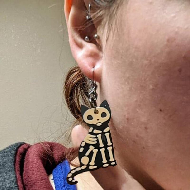 🎃Cute appearence: This product has two styles of earrings in one pair, a cute cat and a skeleton cat, which is very much in line with the theme of Halloween.