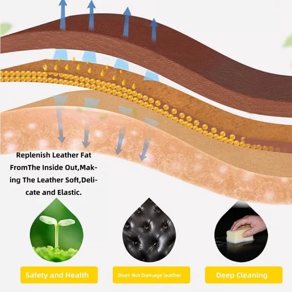 This premium leather care balm deeply nourishes, restores, and waterproofs leather surfaces. Perfect for sofas, car seats, handbags, shoes, and even leather floors. Enriched with natural beeswax and plant oils, it brings back the supple softness while creating an invisible shield against scratches, stains, and UV damage.