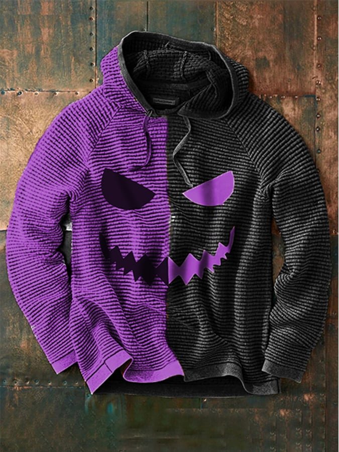 Men’s Halloween Contrast Hooded Drawstring Sweater