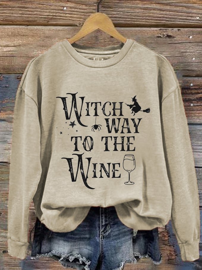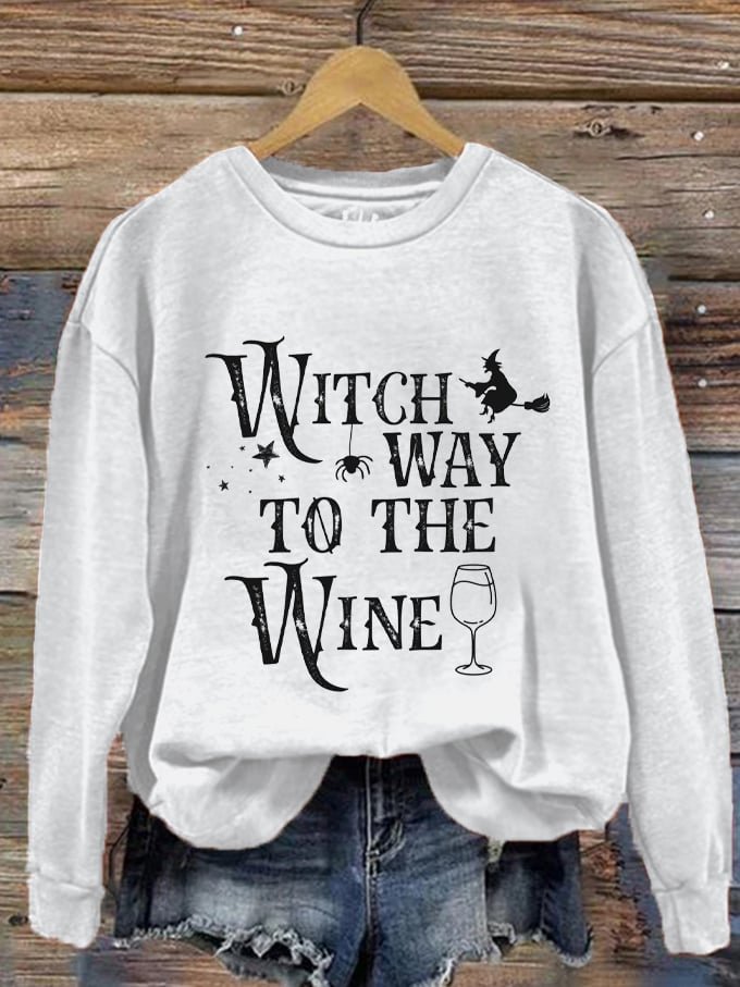 Women’s Halloween Witch Way To The Wine Print Sweatshirt